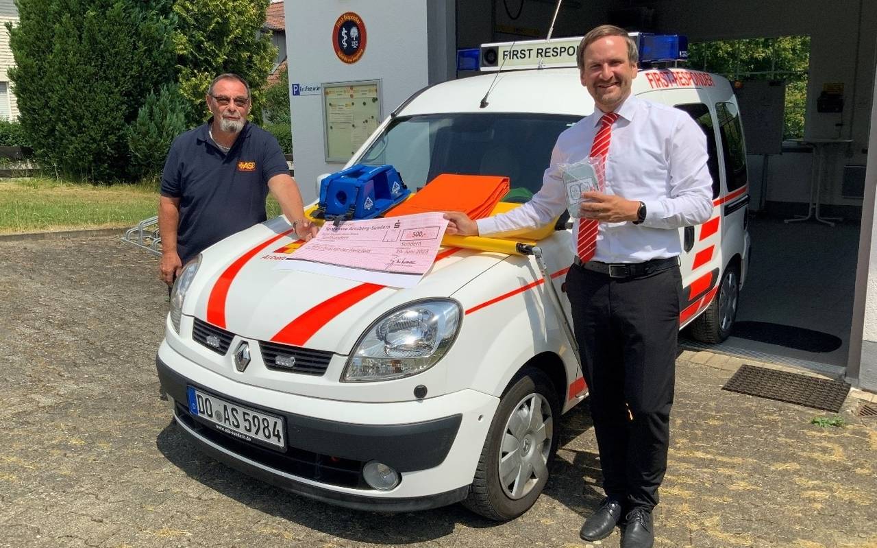 Die Sparkasse Arnsberg-Sundern unterstützt die Arbeit von Ersthelfern im Raum Sundern. Für ihre Einsätze benötigen die Ersthelfer und -helferinnen immer wieder neues Einsatzmaterial. Die Sparkasse Arnsberg-Sundern spendet dafür 500 Euro.