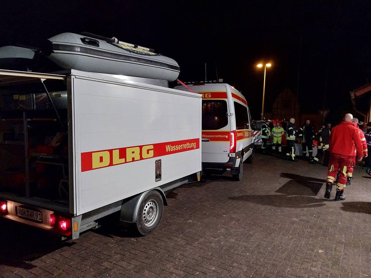 Ebenso wurden auf Wasserunfälle spezialisierte Suchhunde angefordert, die aus den Kreisen Recklinghausen und Soest anrückten. Ausgehend von der gemeldeten Einsatzstelle wurde umgehend die Personensuche in Angriff genommen. Dazu wurden drei Einsatzabschnitte gebildet: Die Suche wurde per Booten auf dem Wasser, entlang des Flusses uferseitig und per Drohnen aus der Luft durchgeführt. Die Einsatzkräfte vor Ort wurden bedarfsgerecht in die drei Abschnitte eingeteilt, wobei das DLRG die Suche auf dem Wasser übernahm. Die Suche gestaltete sich als schwierig aufgrund der Dunkelheit, der kalten Außentemperatur und der hohen Fließgeschwindigkeit des Flusses Hoppecke an einigen Stellen. Im Laufe der Nacht kam dann die traurige Nachricht: Einige Kilometer flussabwärts der gemeldeten Einsatzstelle entfernt wurde die Person durch die Rettungskräfte gefunden, Einsatzkräfte des DLRG bargen den leblosen Körper aus dem Wasser. Der Notarzt konnte nur noch den Tod des 60jährigen feststellen. Die hinzugezogene Kriminalpolizei hat die Ermittlungen aufgenommen und geht derzeit von einem tragischen Unglück aus. Mitglieder der Psycho-Sozialen-Unterstützung (PSU) des HSK kümmerten sich um die Angehörigen und standen auch den eigenen Einsatzkräften zur Verfügun standen auch den eigenen Einsatzkräften zur Verfügung. Gegen 4.30 rückten die letzten Einsatzkräfte wieder ein. Zuvor gab es eine kurze Einsatznachbesprechung für alle Einsatzkräfte im Bredelarer Gerätehaus. Im Einsatz waren knapp 80 Rettungskräfte aus den genannten Organisationen zuzüglich Polizei und Kriminalpolizei. Die Einsatzleitung lag bei der Leitung der Feuerwehr Marsberg.