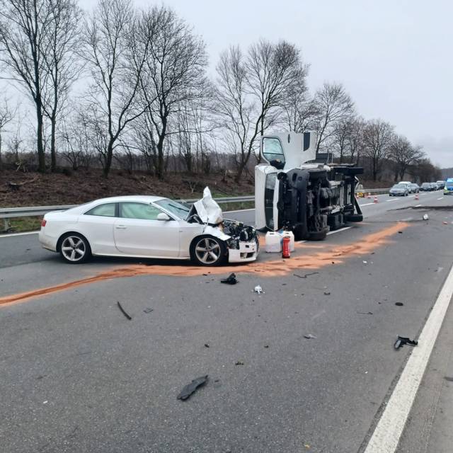 Update: 14: 38 Nach dem Unfall ist der Fahrstreifen wieder freigegeben. Jetzt staut sich der Verkehr wegen eines liegengebliebenen LKW