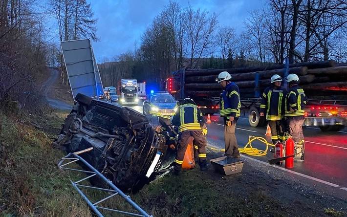 Unfall auf der B480 in Olsberg endet glimpflich