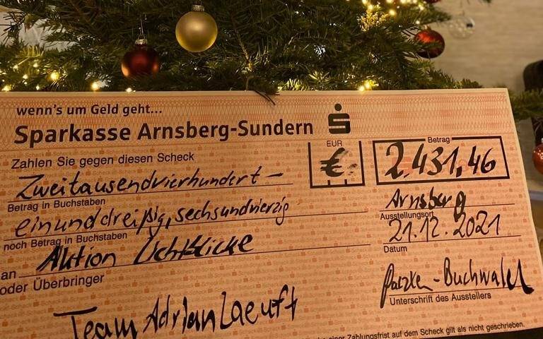Team "Adrian läuft..." aus Arnsberg spendet 2.431,46€ an die Aktion Lichtblicke