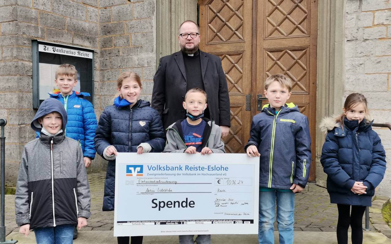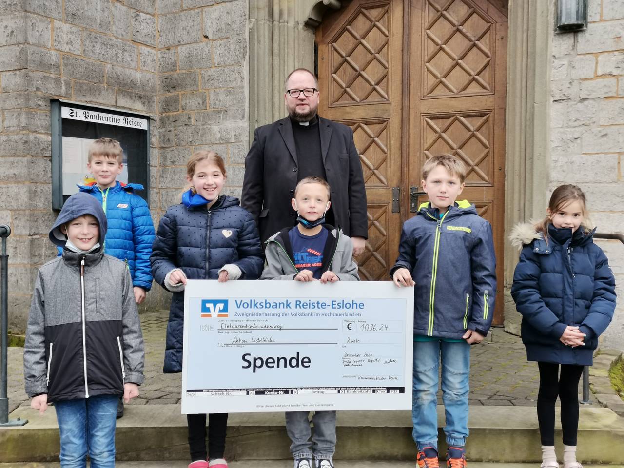 Die Kommunionkinder aus Eslohe-Reiste sammelten vor Weihnachten 1096,24€.