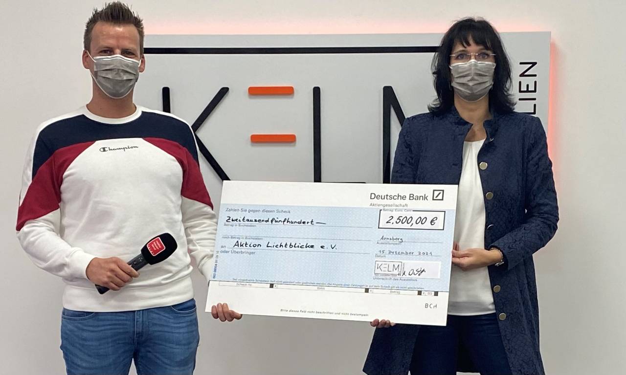 Das Immobilienbüro Kelm aus Arnsberg spendet 2.500€ an die Aktion Lichtblicke.
