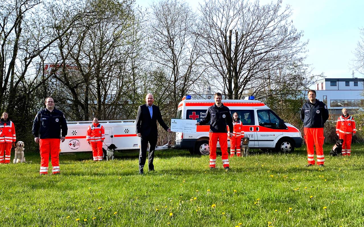 Über 10.000 Euro spendet das Unternehmen für die Arbeit der Rettungshundestaffel. Mit dem Geld soll unter anderem das zeitaufwändige Training der Hunde und Hundeführer finanziert werden.