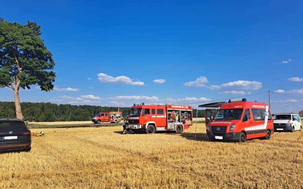 Ein 24-jähriger Autofahrer war nach bislang noch ungeklärter Ursache von der Fahrbahn abgekommen und mit einem Strommast kollidiert. Dieser brach nach Angaben der Feuerwehr Marsberg bei dem Unfall. Das Auto kam auf einem Stoppelfeld zum stehen. Der Fahrer wurde in dem völlig zerstörten Fahrzeug eingeklemmt. Trotz der sofort eingeleiteten Rettungsmaßnahmen, kam für den jungen Fahrer jede Hilfe zu spät und er starb noch an der Unfallstelle. Für die Feuerwehr bestand die Schwierigkeit, dass sich sofort um den eingeklemmten Fahrer gekümmert werden musste, gleichzeitig aber durch den Unfall das Stoppelfeld in Brand geraten war. Die schnell eingeleiteten Löschmaßnahmen zeigten raschen Erfolg. Das Feuer konnte sich nur auf eine ca. 40m² große Fläche ausbreiten. Der ebenfalls alarmierte Netzbetreiber konnte schnell Entwarnung für die Einsatzkräfte geben, da von der Stromleitung keine Gefahr ausging.