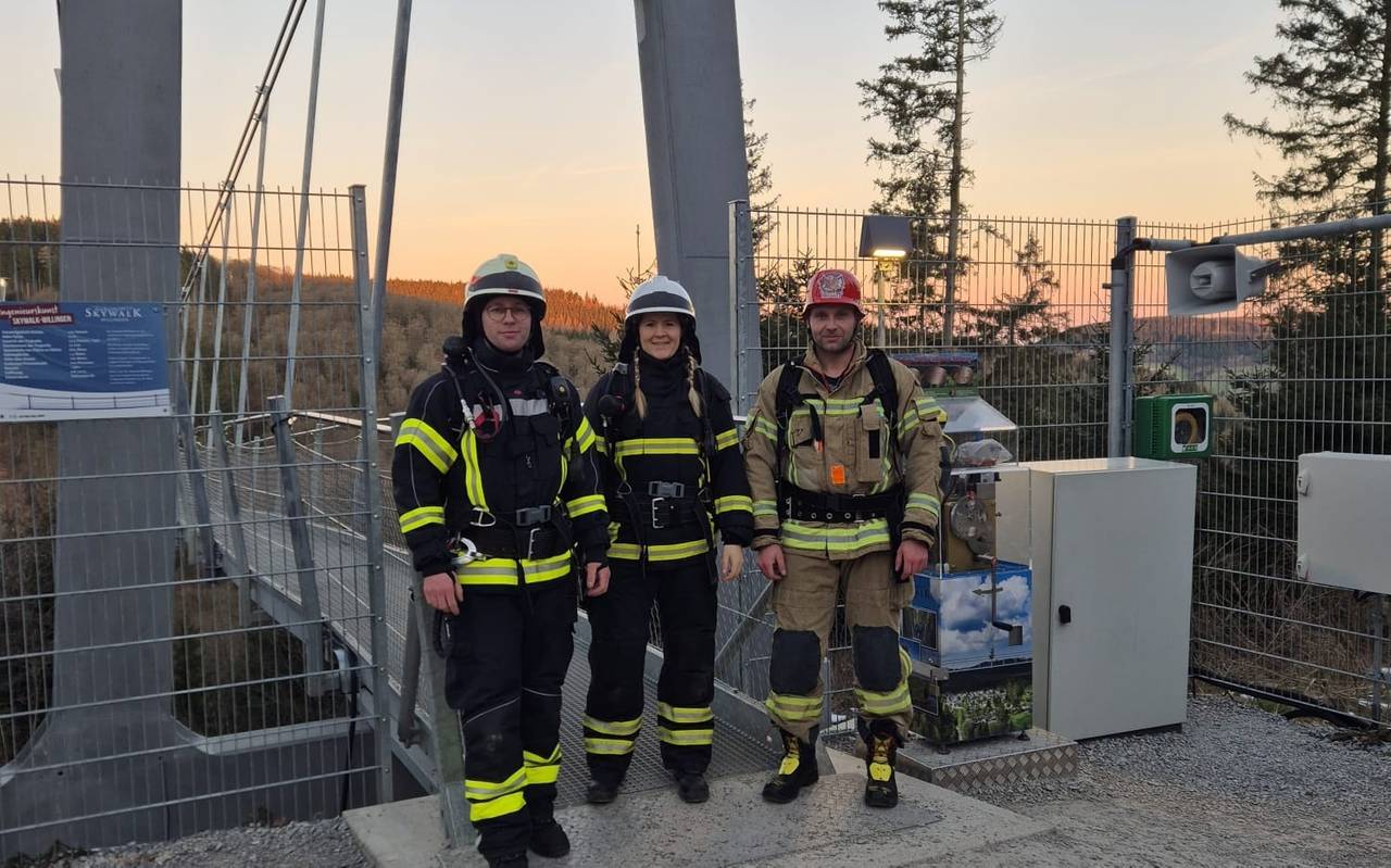Charity Lauf auf dem Skywalk in Willingen, 5 Feuerwehrleute wollen ihn 15 Mal überqueren.