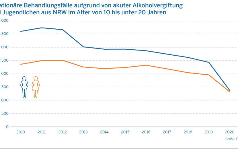 Auch landesweit ist die Zahl der Jugendlichen, die wegen einer akuten Alkoholvergiftung behandelt werden mussten um 38,7 Prozent zurückgegangen.