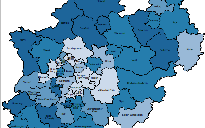 ergaben sich für den Märkischen Kreis (8,7) sowie die Städte Oberhausen (5,6) und Hagen (5,5).