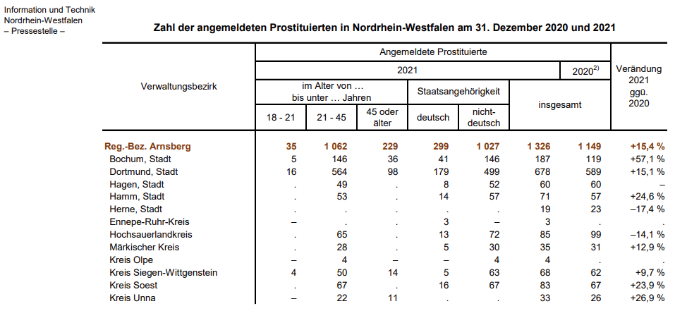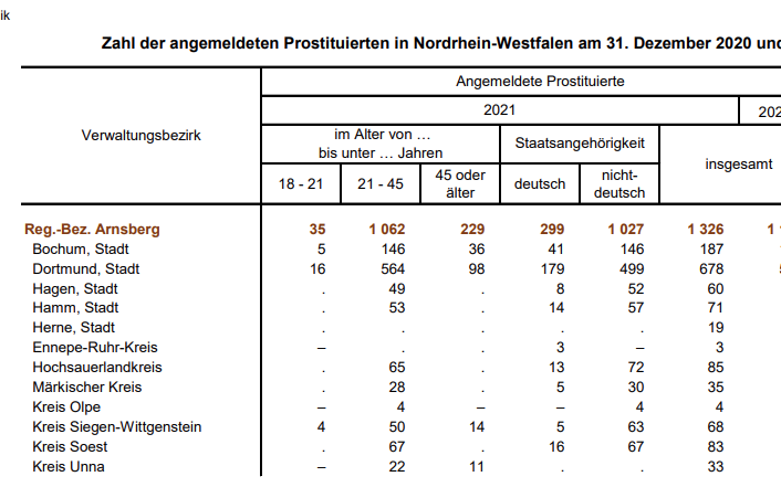 Die Anzahl der Prostituierten im Hochsauerlandkreis ist zuletzt zurückgegangen. In Dortmund und Bochum sind die Zahlen gestiegen.