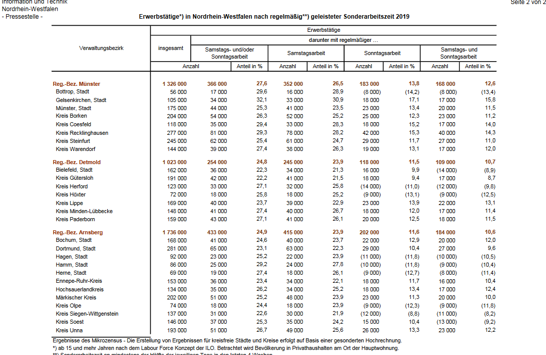 Jeder vierte Beschäftige im HSK muss auch am Wochenende ran