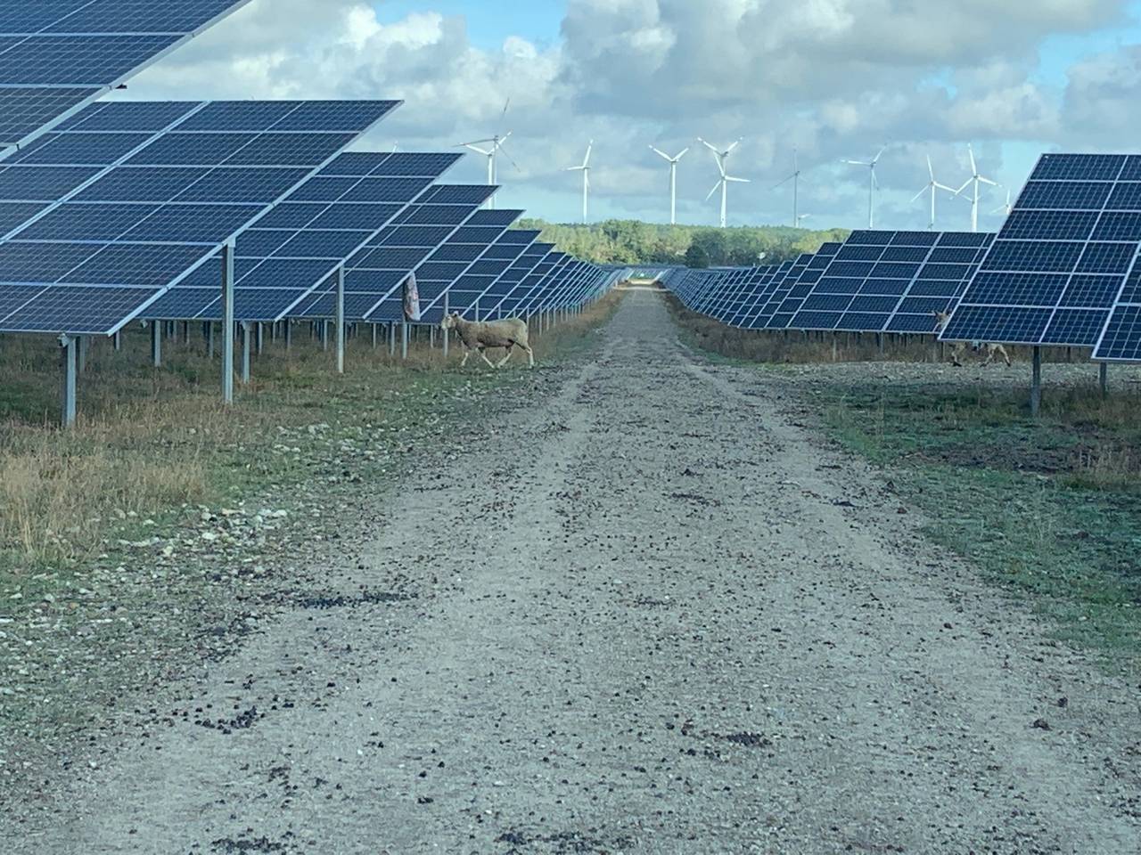 Kilometerweit reihen sich Platten mit Solarmodulen auf der etwa dreihundert Fußballfelder großen Fläche aneinander. Diese Platten sind bis zu vierhundert Meter lang und gut einen Meter hoch, sie stehen leicht schräg der Sonne zugewandt im ländlichen Brandenburg, weil so ein Solarkraftwerk eben viel Fläche braucht. Insgesamt sind hier auf 209 Hektar 465.000 Solarmodule verbaut, erklärt Geschäftsführer und Ingenieur Daniel Richter vom Betreiber ENBW Thorsten Ortmann. Bis zu 50.000 Haushalte könne man rein rechnerisch so mit Strom versorgen.