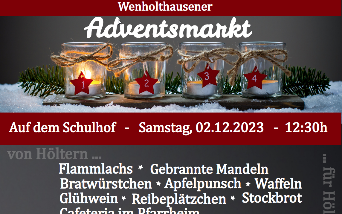 Am Samstag (02.12.) findet der Adventsmarkt in Eslohe-Wenholthausen statt. Das Motto ist "Von Höltern für Hölter". Der komplette Erlös geht an die Kinder und Jugendlichen im Dorf.