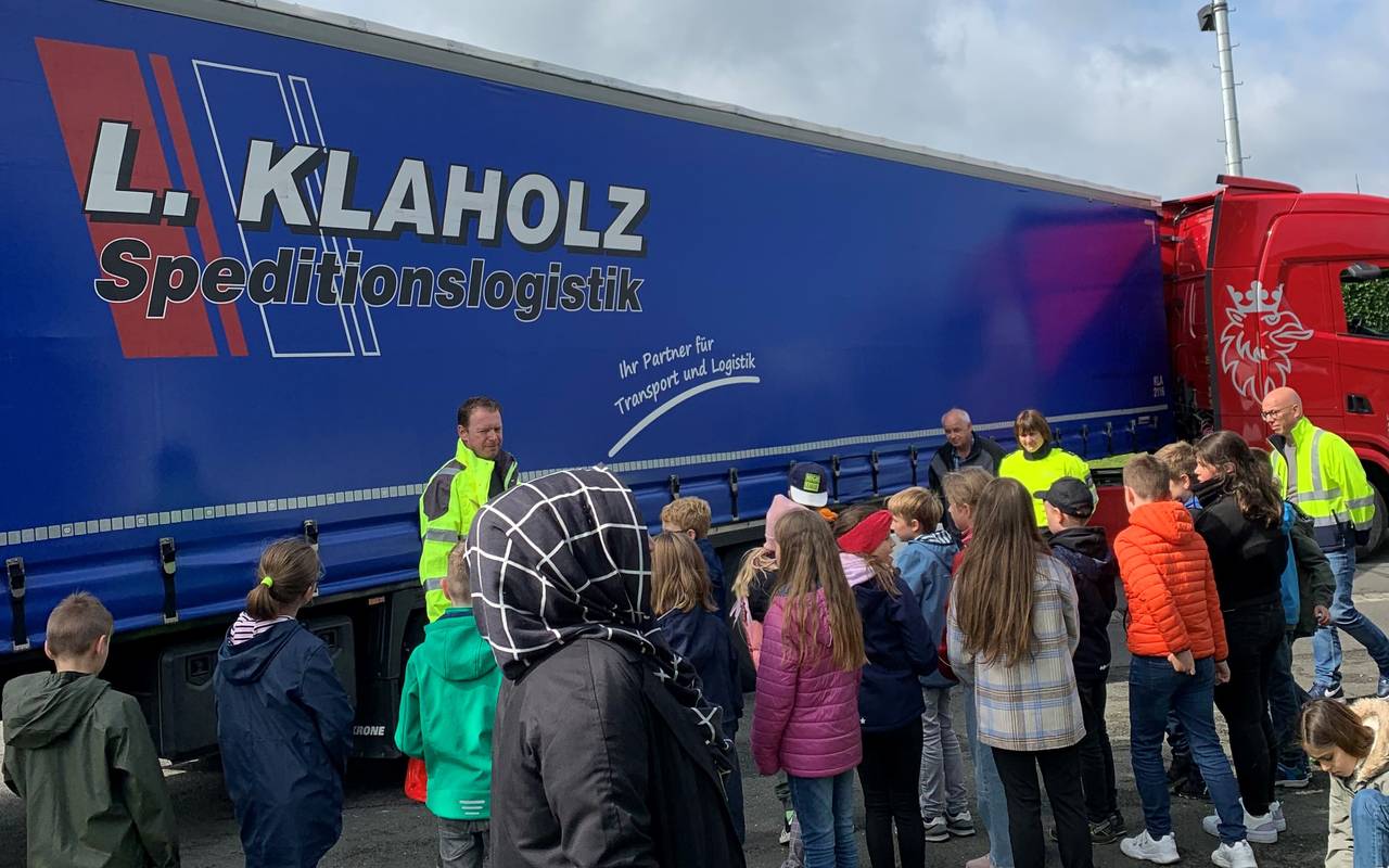 Bei der Aktion "Toter Winkel" in Brilon lernen 300 Viertklässler den Umgang mit großen Lastwagen. Viel Spaß hatten die Grundschüler, als sie sich auf den Fahrersitz setzen durften. Dabei konnten sie feststellen, dass ihre Mitschüler im toten Winkel schnell verschwunden sind.