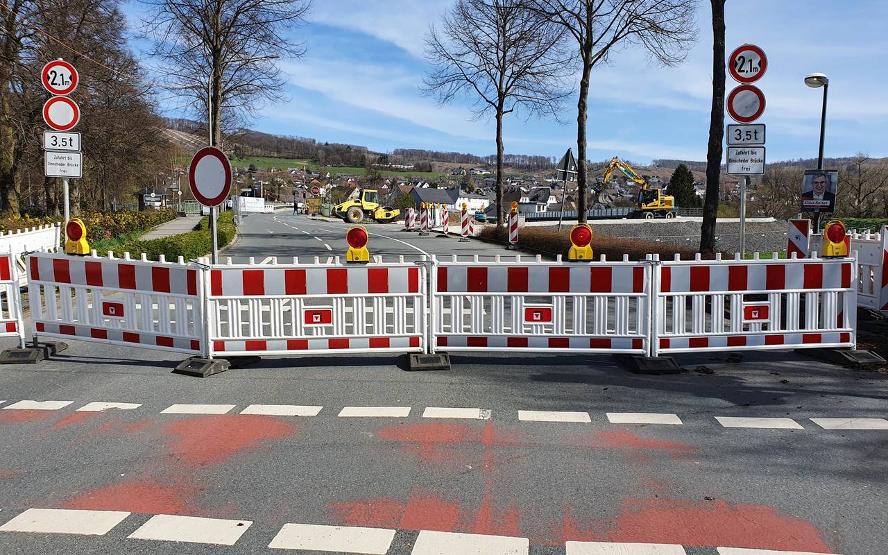 Die Dinscheder Brücke in Arnsberg-Oeventrop ist gesperrt, Autofahrer müssen einen langen Umweg fahren, um auf die andere Seite des Orts zu kommen.