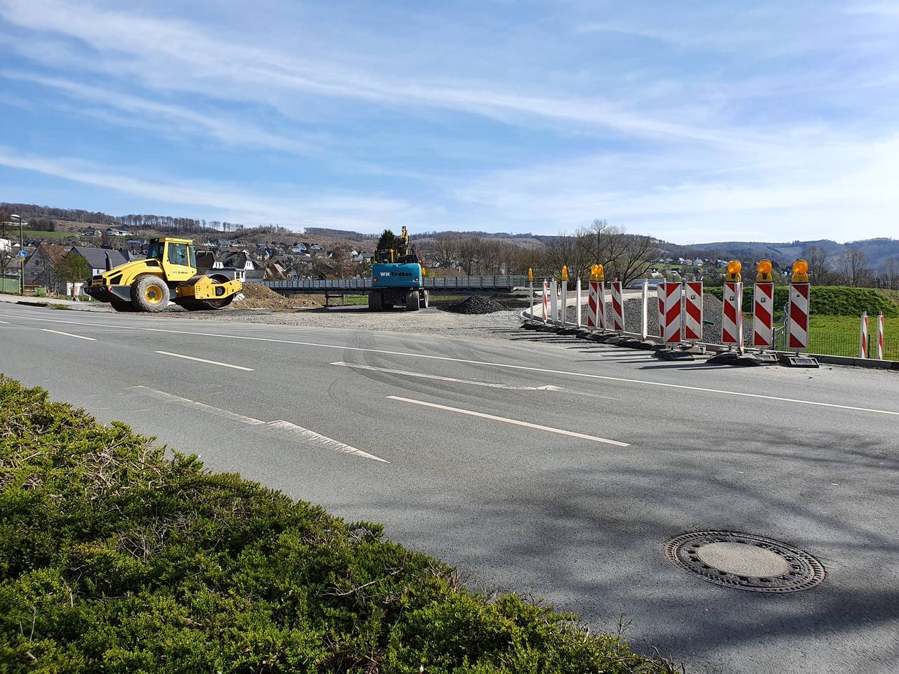Seit Jahren hat es sich an der Dinscheder Brücke in Arnsberg-Oeventrop gestaut. Die marode Brücke war nur noch einspurig freigegeben, deshalb stand da eine Baustellenampel. Jetzt staut es sich nicht mehr - weil man da gar nicht mehr lang fahren kann. Um die marode Brücke zu erneuern, wird jetzt eine Behelfsbrücke daneben gebaut, um den Verkehr darüber umzuleiten. Noch bis Ende April dauern die Aufbauarbeiten und so lange ist alles gesperrt - und Oeventrop geteilt. Wer in Oeventrop auf die andere Seite der Ruhr will, muss einen kilometerlangen Umweg über das Nachbardorf Wildshausen fahren. Blöd für halb Oeventrop - die meisten Geschäfte sind nämlich nur auf einer Seite der Ruhr. Aber viele Anwohner sagen auch: Gut, dass überhaupt was passiert an der maroden Brücke. Manche ägern sich aber darüber, dass die Planung so lange gedauert hat. Ab Mai soll der Verkehr über die Behelfsbrücke fließen. Bis die Dinscheder Brücke komplett erneuert ist, soll es laut Straßen.NRW aber noch bis Ende nächsten Jahres dauern.