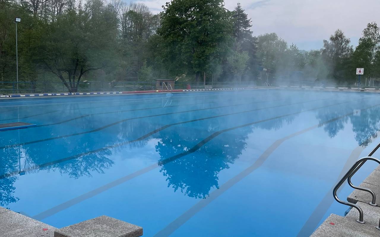 Im Freibad Meschede ist 4 Mal in der Woche Frühschwimmen angesagt. Heute Morgen bei 5 Grad Außentemperatur hat das Wasser gedampft, da der Temperaturunterschied so groß war. Das hat aber die treuen Frühschwimmer von nichts abgehalten. Bei 23 Grad Wassertemperatur haben sie ihre Runden gezogen.