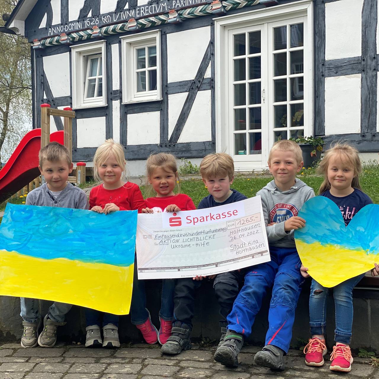 Der Kindergarten aus Schmallenberg-Holthausen unterstützt die Ukrainehilfe unserer Aktion Lichtblicke.