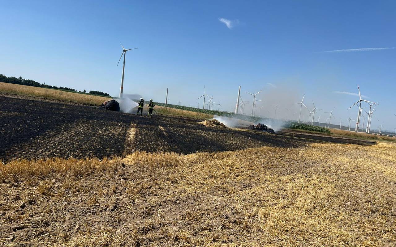 Wenige Tage nach dem Brand einer Rundballenpresse kam es gestern Nachmittag in Essentho wieder zu einem Brand. Diesmal brannten drei Strohballen und ca. 600m² Stoppelfeld. Die Einsatzkräfte aus Essentho, Meerhof, Oesdorf, Westheim und Marsberg hatten den Brand zügig gelöscht – obwohl die enorme Hitze dieses Tages die Löscharbeiten spürbar erschwerte.