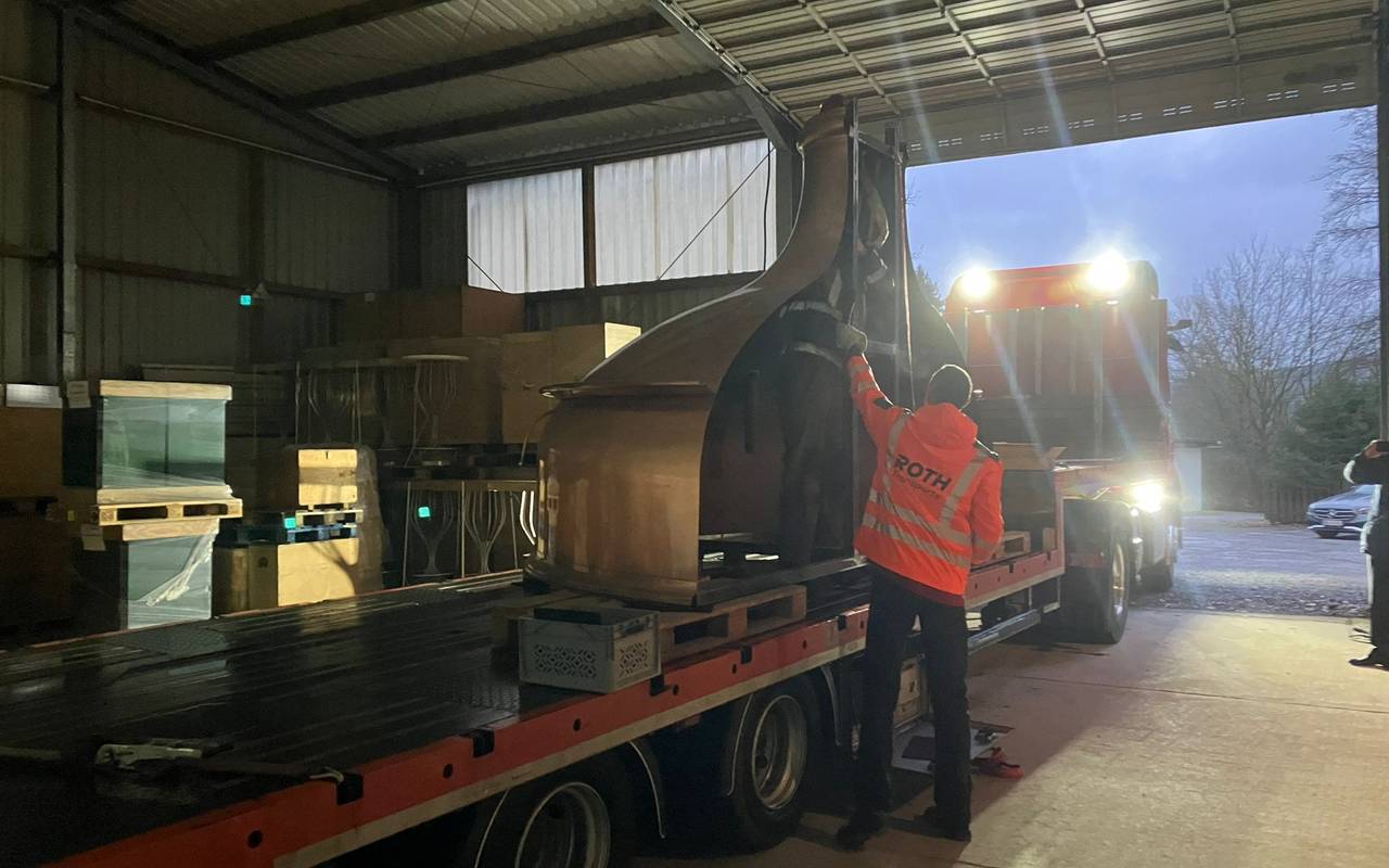 In dem riesigen Sudkessel wurde bei Veltins bis in die 80er Jahre Bier gebraut. Nun wird er bald im Sauerlandmuseum ausgestellt. Dort läuft ab März eine Ausstellung rund um das Thema Bier und Braukunst. Wir waren beim Transport dabei