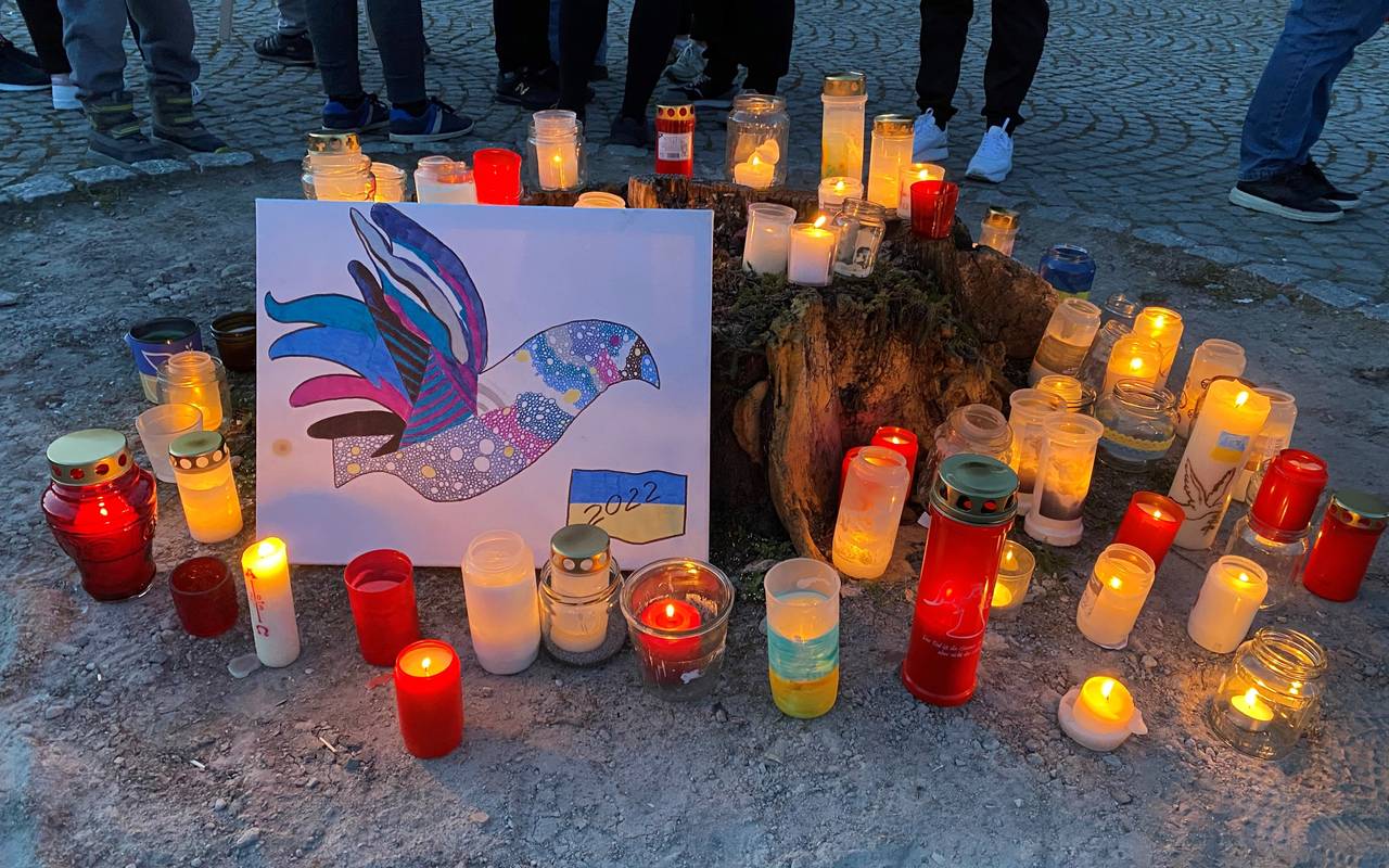Friedenslieder, Kerzen und Wünsche auf einer Leinwand - in Arnsberg haben gestern Abend rund 60 Menschen für den Frieden und gegen den Krieg in der Ukraine demonstriert. Auch in Meschede sind rund 230 Menschen zu einer Friedenswache zusammgenkommen.