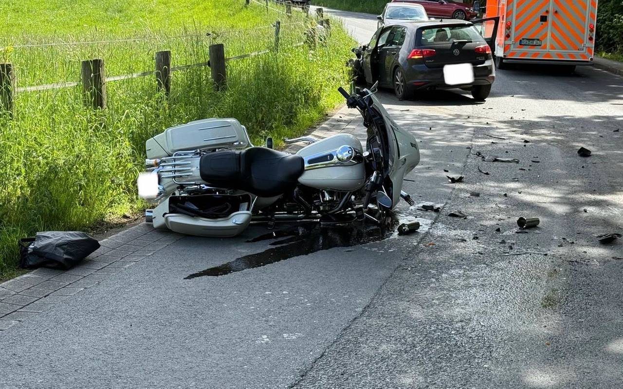 Ein Auto und ein Motorrad waren zusammengestoßen. Die betroffene Straße war gesperrt.